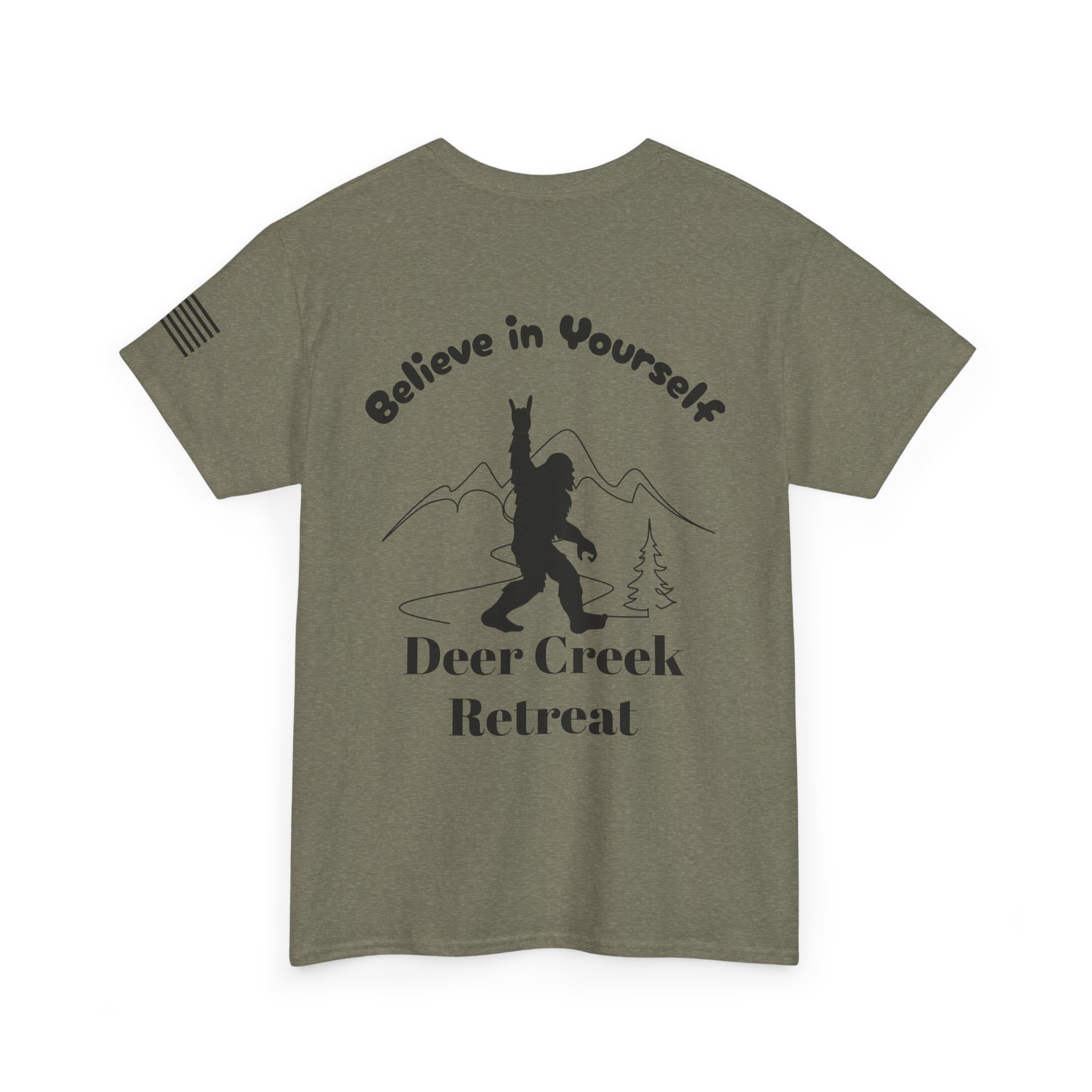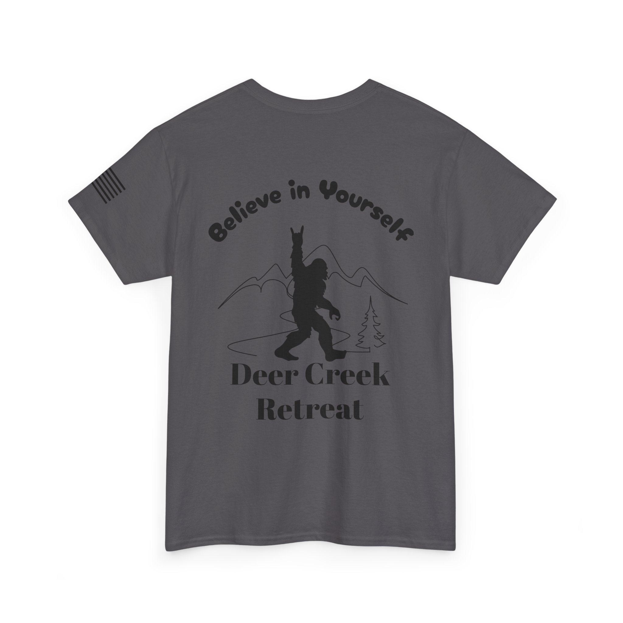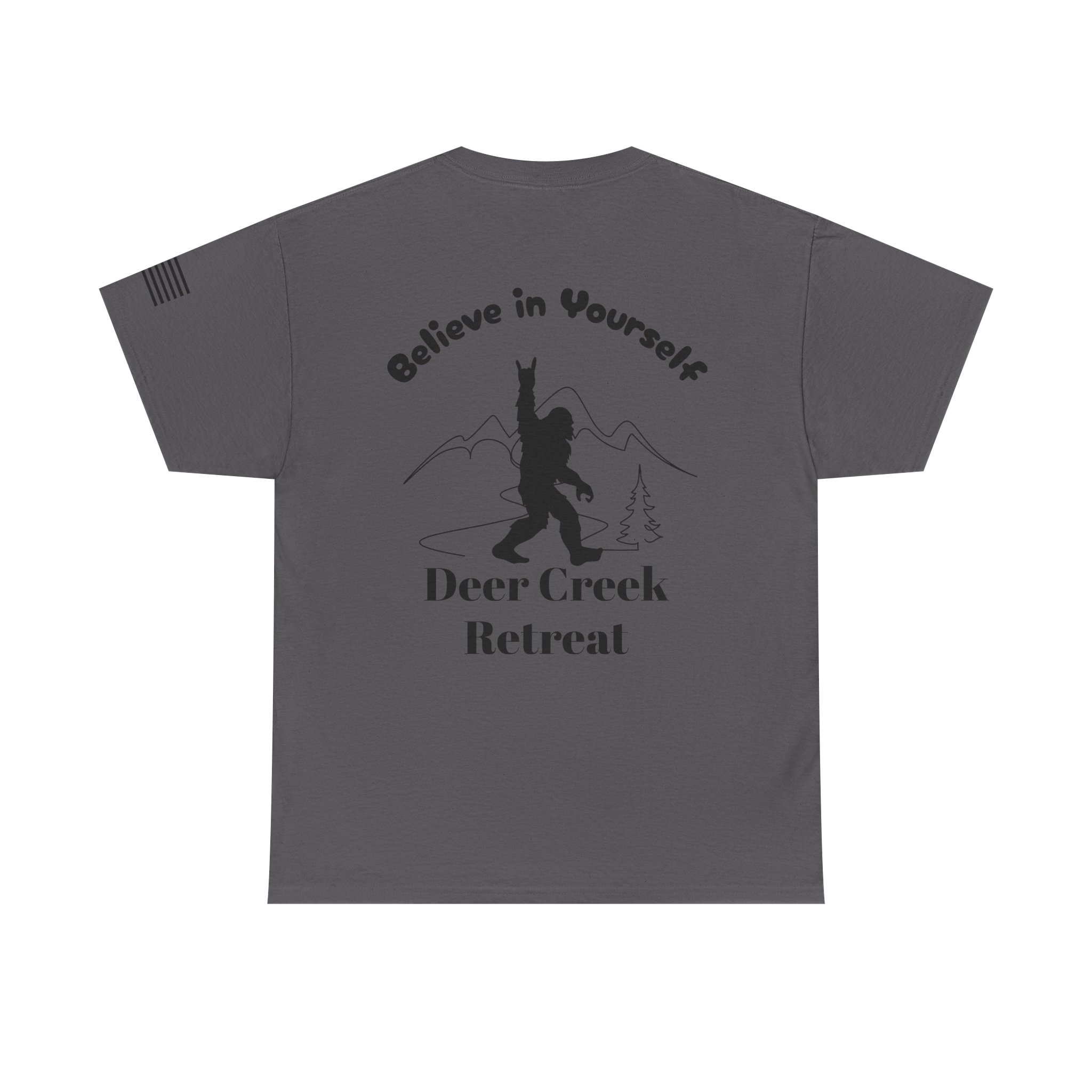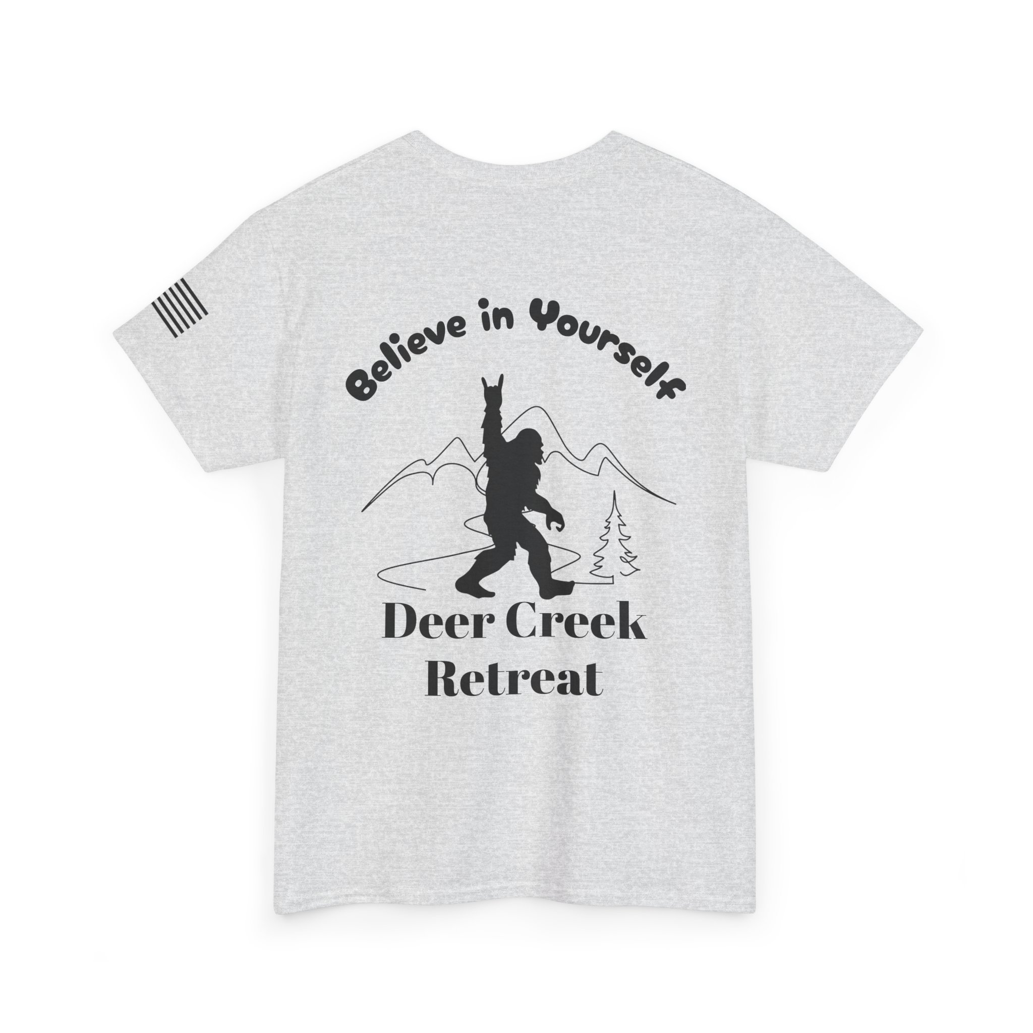 Are you ready for an adventure? Old Lasal is a unique and mystical place. Join us for a stay. deercreekretreat.blog. Our legend-themed tee for the retreat center is perfect for those who love mysteries and folklore. Ideal for wearing outdoors and camping trips. Relatable to fans of the Bigfoot mythology and those who enjoy cryptid-themed apparel. The shirt is suitable for casual wear or as a conversation starter at gatherings and parties. Perfect for enthusiasts of urban legends and wilderness adventures.