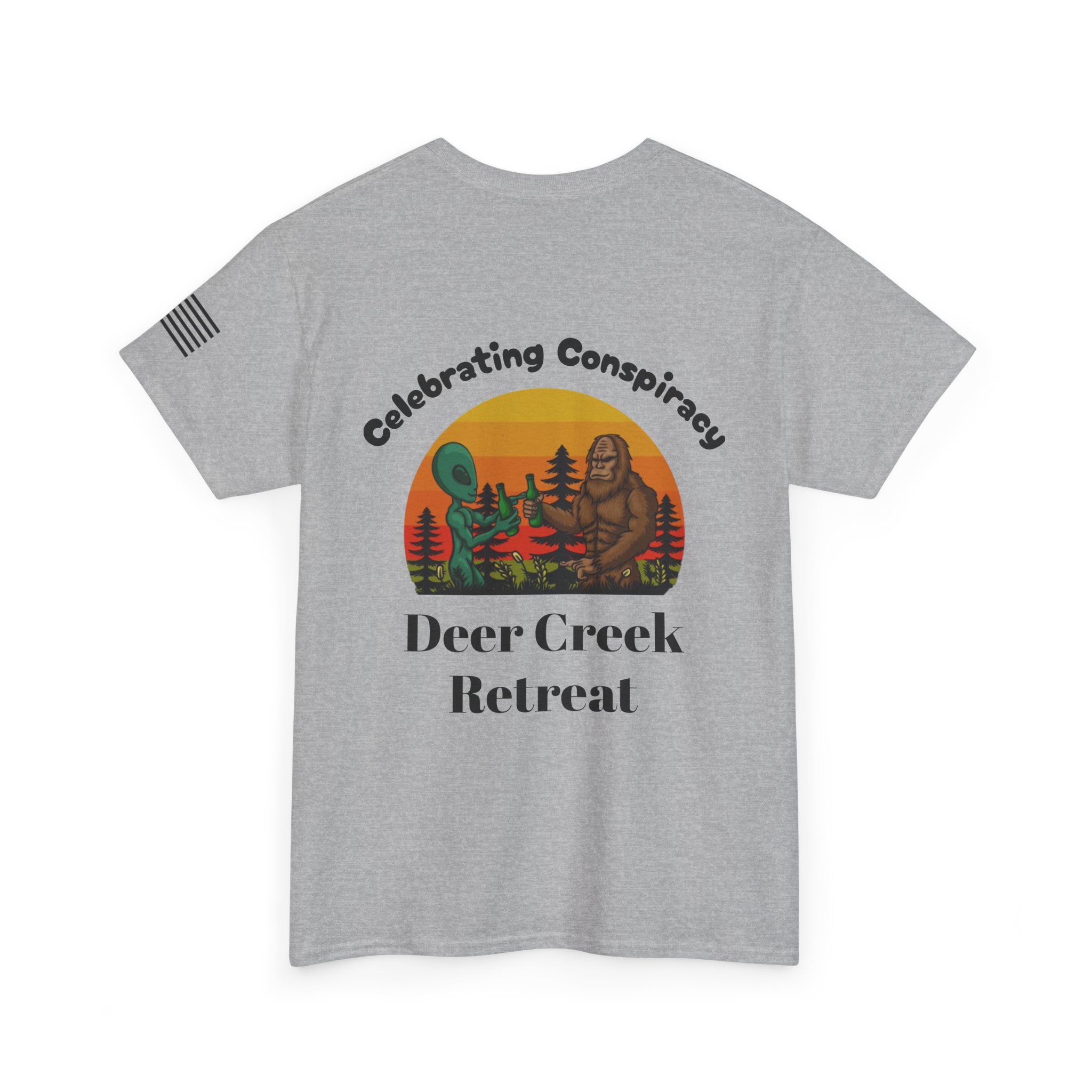 Are you ready for an adventure? Old Lasal is a unique and mystical place. Join us for a stay. deercreekretreat.blog. Our legend-themed tee for the retreat center is perfect for those who love mysteries and folklore. Ideal for wearing outdoors and camping trips. Relatable to fans of the Bigfoot mythology and those who enjoy cryptid-themed apparel. The shirt is suitable for casual wear or as a conversation starter at gatherings and parties. Perfect for enthusiasts of urban legends and wilderness adventures.