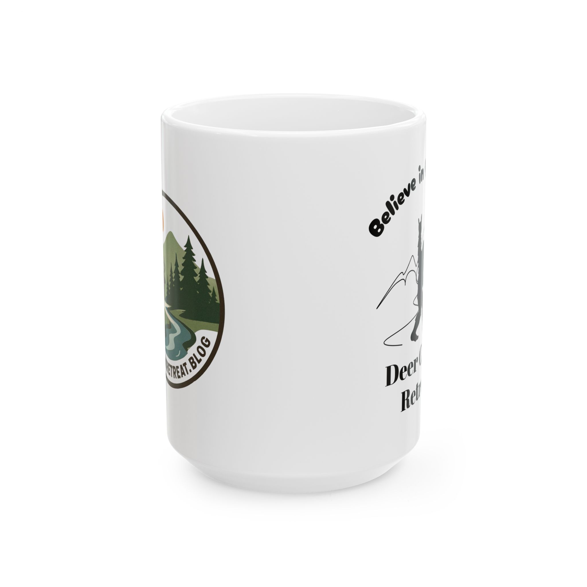Are you ready for an adventure? Old Lasal is a unique and mystical place. Join us for a stay. deercreekretreat.blog. The legend-themed, beautifully designed ceramic mug is perfect for enjoying your favorite beverages at our retreat center. Whether you are sitting on the front porch in the morning, the glossy finished mug and vibrant colors only enhance the coffee-sipping experience in the crisp, clean mountain air. The comfortable C-handle ensures easy handling, and its durable construction means the unique design will stand out. Perfect for those who love mysteries, myths, and folklore. Relatable to fans of the Bigfoot mythology and those who enjoy cryptid-themed drinkware. Ideal for nature lovers and outdoor enthusiasts, this mug is the perfect gift for birthdays, holidays, or special occasions. Celebrate your loved ones with this thoughtful present that signifies warmth and connection, making each sip a delightful experience.
